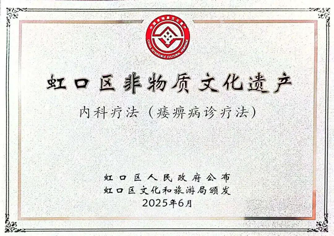 上海市中西医结合医院内科疗法(痿痹病诊疗法)入选虹口区第十批非物质文化遗...