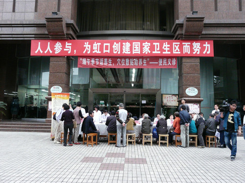 本站讯:5月17日上午8点,我院在住院部广场举办了“端午季节话养生,穴位敷贴助养生”为主题的便民义诊活动。当天早上,由上海名老中医李庚和教授为代表的传统医学科全体专家,在盛昭圆主任的带领下,放弃休假,举办了这次活动。相关职能科室,如门办、科研科、外联办等人员也主动提供多方面支助,舒院长也专程赶来助阵,慰问了专家及工作人员。 据中医专家介绍,端午前后,天气渐热,正是中医药文化中“冬病夏治”的好时候,更是我院传统医学科、针灸推拿理疗科等特色专科施展优势的时候,其中特别是穴位敷帖对哮喘、慢支、风湿病痛等疾病疗效确切、显著,每年众多病人慕名而来,已形成特色优势。当天活动吸引了百余名市民参与,还得到了新闻晨报、上海老年报和虹口有线台等传媒的关注,现场还为每位咨询市民发放了我院特制的辟秽驱虫香囊。