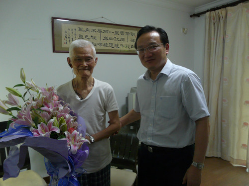 在奚老家,徐建光校长与奚老亲切握手,并送上了鲜花表达对奚老的真挚的祝福。92高龄的奚老精神矍铄,在家中热情接待了来访的徐校长一行。徐校长关切地询问了奚老的工作、生活和健康状况,称赞奚老虽已年过九旬,仍然坚持门诊、带徒传经,奋战在医疗第一线,把毕生精力都奉献给了医疗卫生事业,以身作则实践了“大医精诚”的高风亮节。徐校长指出:奚老是“国宝”级人物,是我国中医界的宝贵财富,更是中医大和中西医结合医院的“无价之宝”,学校定会进一步做好奚九一学术思想和临床经验的传承工作。奚老对中医大、卫生局及医院的领导的关心和慰问深表感谢,并表示将会一如既往的秉承中医、中西医结合救病治人的传统,充分发挥中医药潜力,为更多的患者造福,同时培养更多的中医、中西医结合的人才。