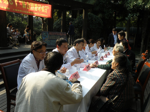 | 本站讯:2014年11月11日上午,我院内分泌科与虹口区疾控中心在霍山公园联合举办了“2014联合国糖尿病日”宣传咨询活动。我院内分泌科主任吴坚、脉管科副主任方豫东、营养科副主任蔡炯、内分泌科医师谢心及眼科医师陆俊作为专家接受了市民们热情的咨询,虹口区慢病科钱梦华科长也亲临指导。同时,现场还为广大市民免费进行血糖、血压的检测,发放宣传资料百余份,此次活动共吸引近300名糖尿病患者参与,受到糖尿病患者的一致好评。 最近流行病学调查表明,目前中国糖尿病患病率已达到11.6%,糖尿病前期患病率已达到50.1%,糖尿病已成为中国乃至全球的严重公共卫生问题。 “健康生活与糖尿病”是2014-2016年联合国糖尿病日的主题,今年恰逢开篇之年,重点关注健康饮食及其对于预防和治疗2型糖尿病、避免并发症,活动意图是传达的关键信息包括:让(食物的)健康选择成为轻松选择、正确选择、从早餐开始。 今年是我院内分泌科在霍山公园咨询服务的第三年,也是开展下社区设摊义务咨询和宣教活动的第六年。对于住院或门诊病员,该科坚持多年每月的以“糖尿病沙龙”形式的健康宣教,坚持多年开展“小郭热线”服务广大糖尿病友,还与营养科联合开展了多年富有特色的糖尿病、肾病等慢性病烹饪演示,宣教辐射面从门诊到住院、从院内到院外,宣教形式丰富多样,受到了糖尿病友的普遍欢迎与赞赏。 在本次糖尿病日咨询活动前,我院内分泌科还于11月4日在医院报告厅开办了糖尿病患者的健康讲座,约50名糖尿病患者参与。 |