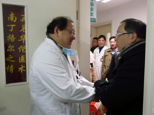 | 本站讯:2月11日上午,虹口区副区长李国华带队,虹口区总工会相关领导、区卫计委书记,以及区医务工会主席一行专程来院,在我院党政领导陪同下,慰问了正在特需门诊坐诊的全国劳模曹烨民主任医师。李区长代表区委、区政府感谢曹主任长年来辛勤的工作并送上慰问品和节日的祝福。曹主任表示:感谢区领导的关心和支持,自己会继续努力工作,为医院的发展,为广大市民的的健康做出自己的贡献。李区长一行还实地察看了我院在建中的中医特色楼,要求进一步增强安全生产责任意识,完善安全生产制度规范,健全应急反应机制,确保建设施工的安全。 |