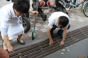 这次大扫除的主要任务是:清扫路面垃圾、清除花坛烟头、清理卫生死角和乱堆乱放等顽疾。将近30名党员积极响应、分工明确、全心投入,各自拿着扫把、铁锹、抹布、簸箕在高温烈日下奋战。一群人有的清扫街面道路、有的专捡烟蒂杂物、有的擦拭尘土扬灰,一个个忙得不亦乐乎;面对一些卫生死角,地势复杂不容易清扫,大伙爬的爬、蹲的蹲仔细检查、耐心清理,尽量不遗漏每个角角落落。经过一个多小时的努力,花坛的烟头没了,水沟落叶少了,各个角落的卫生状况都有了较大的改善,汗流浃背的他们在感到欣慰的同时,也体会到了平日里保洁员工们的不易。