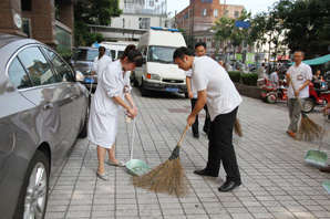 2015年8月19日下午,为进一步推进医院周边环境卫生整治工作,积极为病患营造整洁有序、安全卫生的就医环境,医院第六、第七党支部党员联合行动,来到门诊大楼及住院楼广场前,对外围区域进行了卫生大扫除。