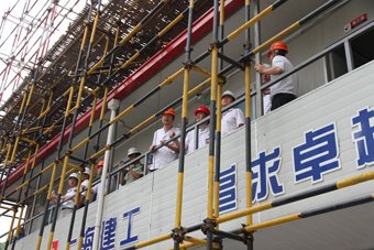 在施工现场,钱副区长一行详细了解了我院中医特色楼工程进展情况,对工程有序推进和施工管理给予肯定,并对施工人员表示慰问,同时对工程建设提出了明确要求:一、工地施工现场的人员进出必须加强管理,施工人员进入现场必须佩戴安全帽,杜绝可能产生的安全隐患。二、加强对现场安全隐患的排查,加强工地施工人员的安全培训,并做好登记和标识。三、妥善安排好工人的安置点,消除工人宿舍安全隐患。四、做好安全预案,提高自身处置能力,发现问题立即整改,将隐患消除在萌芽状态。