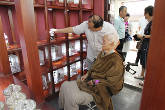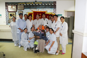 2015年9月8日,正值教师节的前夕,在医院党政领导陪同下,奚老暂时离开病房,参观了奚九一全国名老中医传承工作室。舒院长和曹主任分别向奚老详细介绍了工作室的功能布局与未来的规划。奚老欣慰地点头赞许,并对医院一如既往支持脉管病科的建设发展表示敬意。