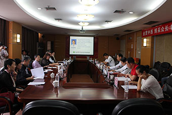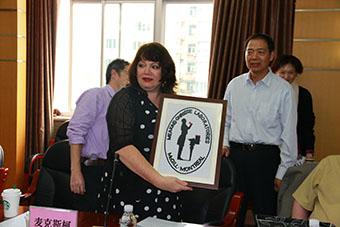 圆桌会议现场 院长赠送实验室logo十字绣