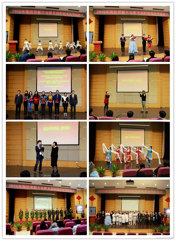 2016年2月4日中午,我院十二楼报告厅洋溢着喜庆的氛围,2015年度医院表彰大会暨首届科技文化节闭幕式在这里举办。院领导班子及我院医护欢聚一堂,喜迎猴年新春。