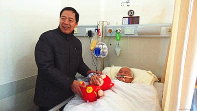 2016年2月14日春节后的第一个工作日,舒志军院长携党政领导班子及脉管科曹烨民主任、院办、党委办同志共赴市一医院给94岁高寿的奚老拜年。院领导在仔细询问了奚老身体状况后,送上了象征吉祥如意的“猴娃”,并祝他新年快乐、身体健康、福寿双全!