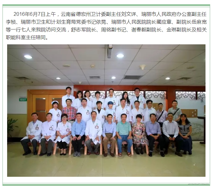云南瑞丽市人民政府、市卫生和计划生育局、瑞丽人民医院领导来院交流