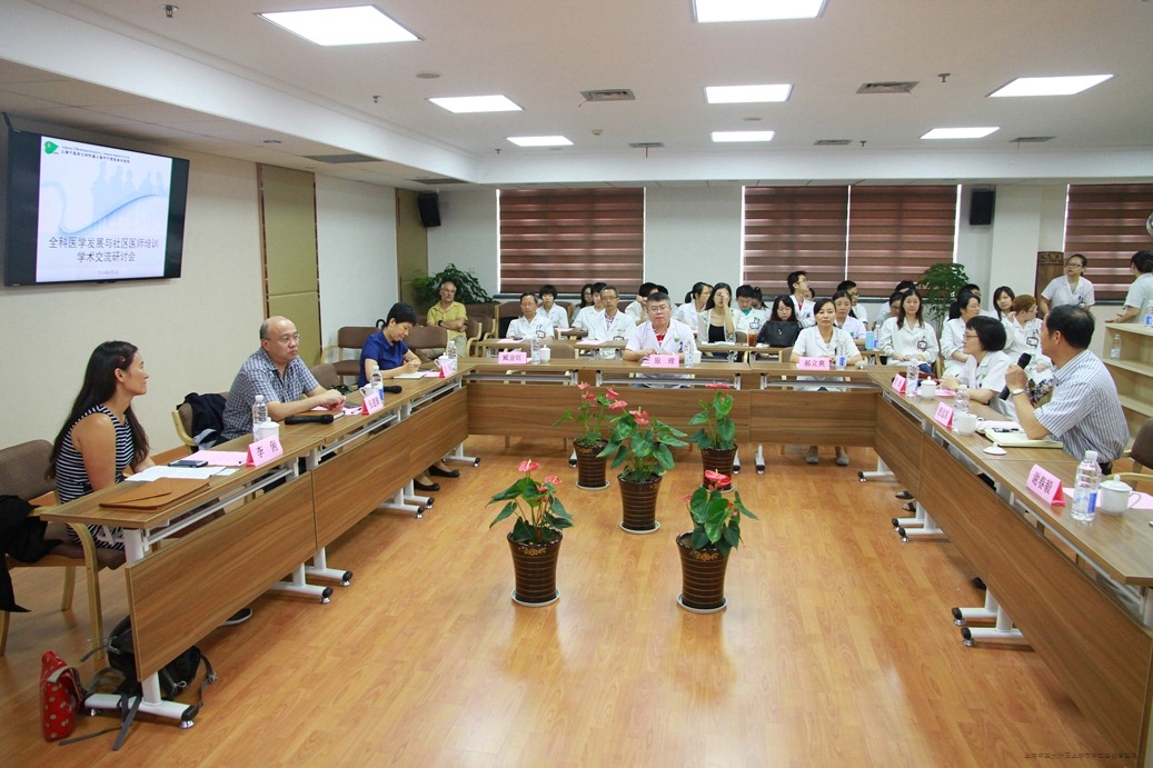 2016年8月3日下午,英国剑桥社区诊所李俐医生在虹口区卫生计生委张建敏副主任、中医药发展与基层卫生科王华科长的陪同下来访我院,就“全科医学发展与社区医师培训”进行了学术交流。我院院长舒志军,副院长谢春毅、舒勤,医疗服务接待办主任原理、门诊办公室副主任臧金旺、教学管理处副处长郝立爽,以及我院中医全科住院医师规范培训学员、针推专业本科毕业实习生、部分临床科室医护人员等出席了本次研讨会。