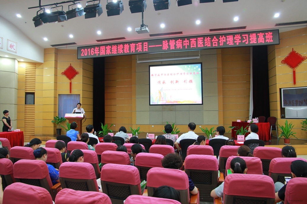 8月11 日 至12日 , 由 我 院 护 理 部 主 办 的 “2016年国家继续教育项目——脉管病中西医结合护理学习提高班”在12楼报告厅成功举行。上海中医药大学医管处唐靖一处长、巿护理学会翁素贞名誉理事长、区卫计委医管科史立华科长分别讲话祝贺,我院舒志军院长代表院领导致开幕辞并对在座专家学者们的到来表示感谢。来自全国各地的300余名医护人员们参加了此次学习班。本次学习班由护理部蔡敏主任主持。