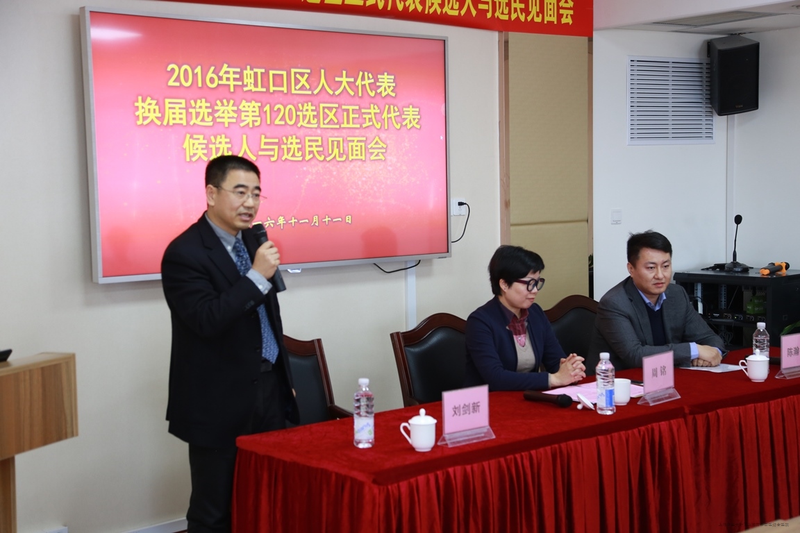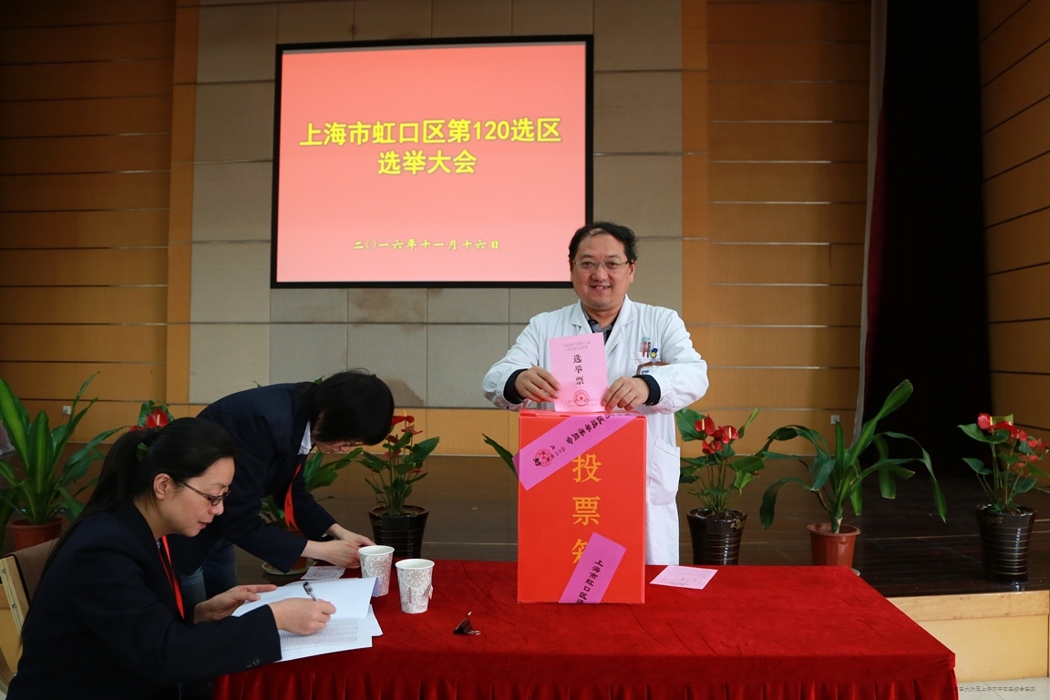 11月16日上午9点,虹口区第120选区人大代表选举大会在我院2号楼(住院部大楼)12楼隆重召开。区卫计委党工委书记郭海英、副书记苏平,我院党政领导及本选区的近200余名选民共同参与了此次选举大会。