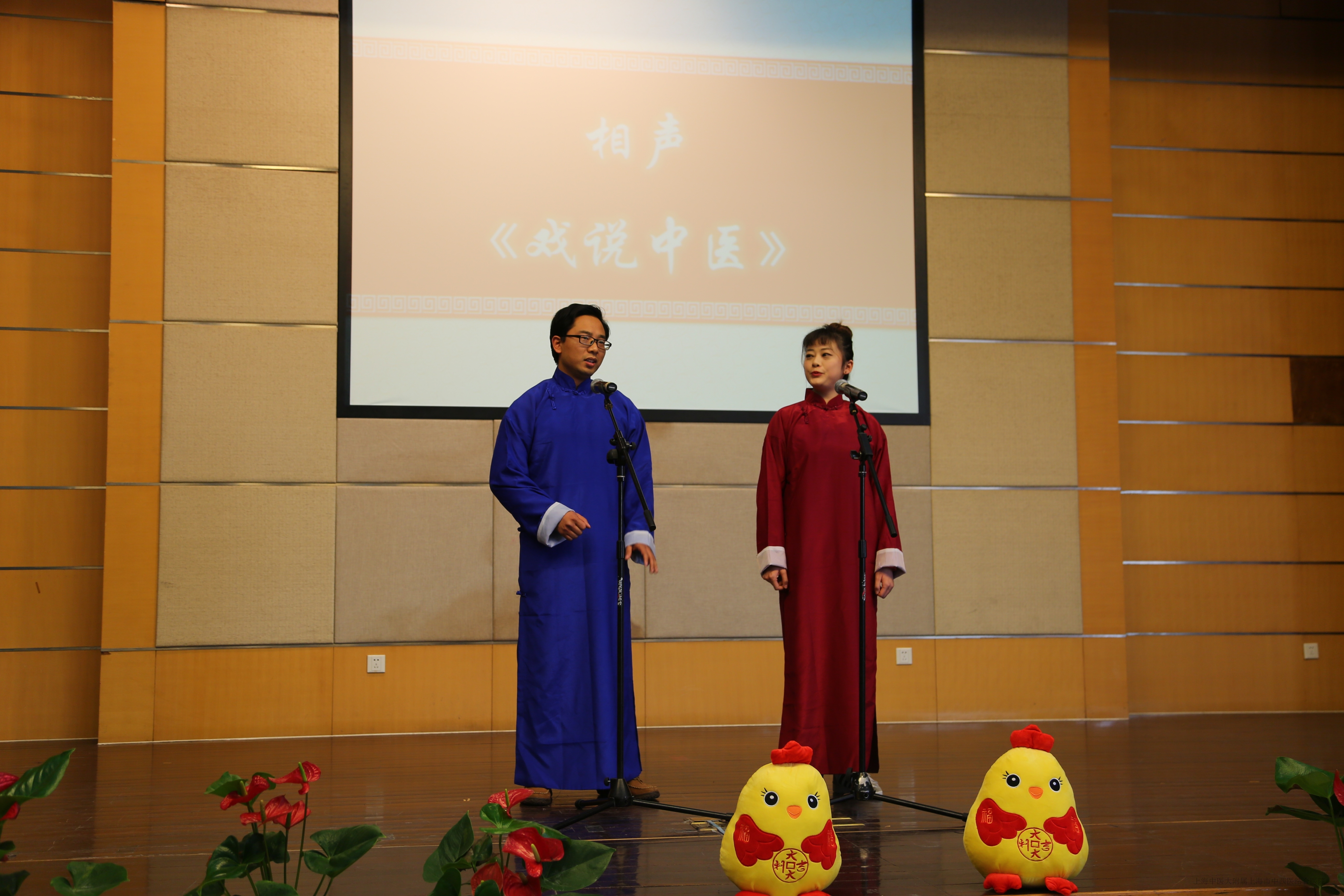 在文艺表演环节,退休职工舞蹈队用集体舞《秀恩爱》首先登台,将年味带给大家,随后的吉他弹唱《大手牵小手》、相声《戏说中医》可谓中西贯通、水准颇高,院口琴队的汇报演出《绿岛小夜曲》、《同一首歌》让人耳目一新,压轴的小组唱《明天会更好》使我们满怀憧憬、激情澎湃。