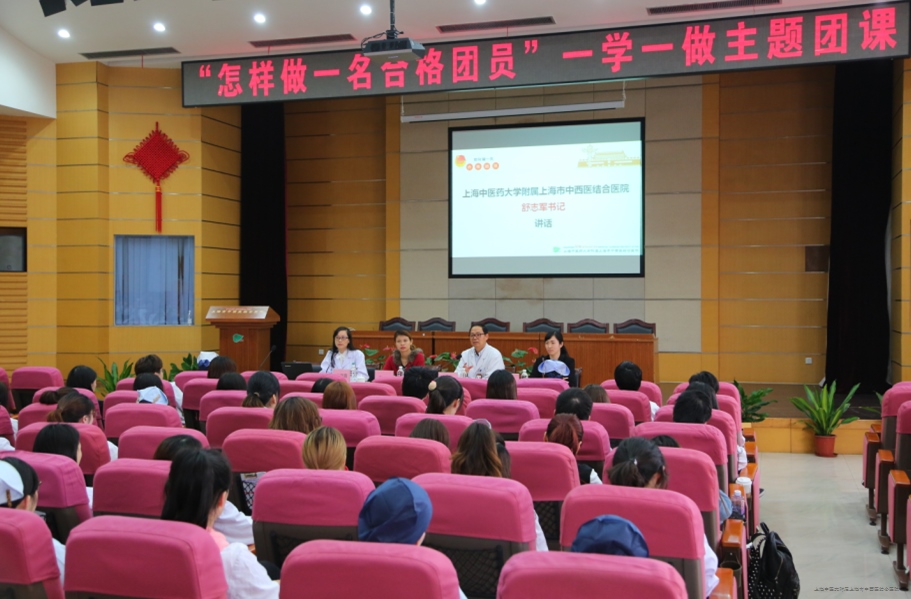 4月26日, 我院团委根据《共青团中央关于在全团集中开展“学习总书记讲话 做合格共青团员”教育实践的通知》及《关于在上海共青团集中开展“学习总书记讲话做合格共青团员”教育实践的通知》要求,组织召开了“怎样做一名合格团员”的主题团课活动,共有105名团员参加。中医大团委副书记万婕、虹口区卫计委团工委副书记陈叶、院党委书记舒志军等领导受邀出席了此次活动。