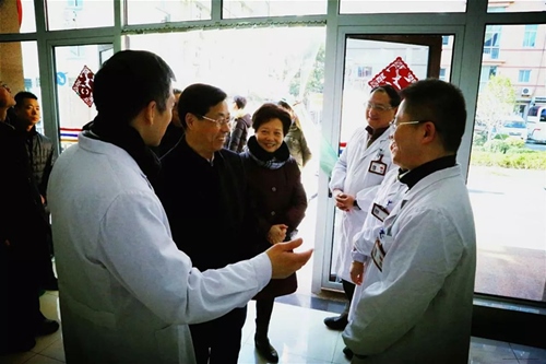 2月13日上午,虹口区委书记吴信宝、区委常委、政法委书记竺晓忠,副区长、公安虹口分局局长张清,副区长张雷等领导一行,由区卫计委党工委书记郭海英、主任张伟胜陪同,来我院慰问一线医护人员并进行安全工作检查。