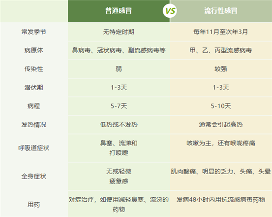 我们总结了流行性感冒和普通感冒的区别,大家可以对照着进行初步识别。
