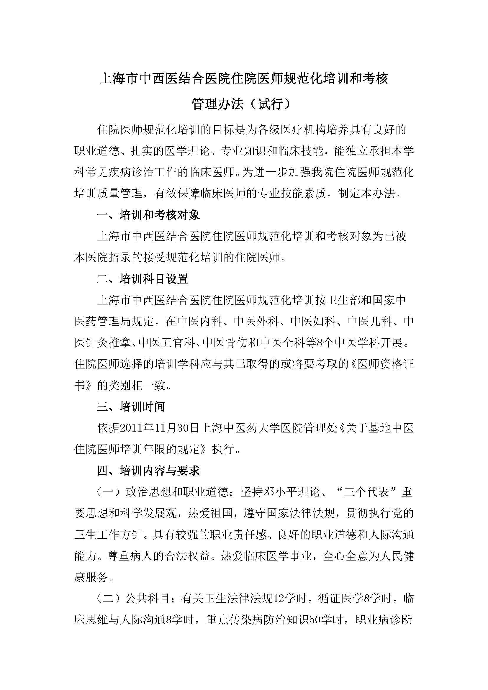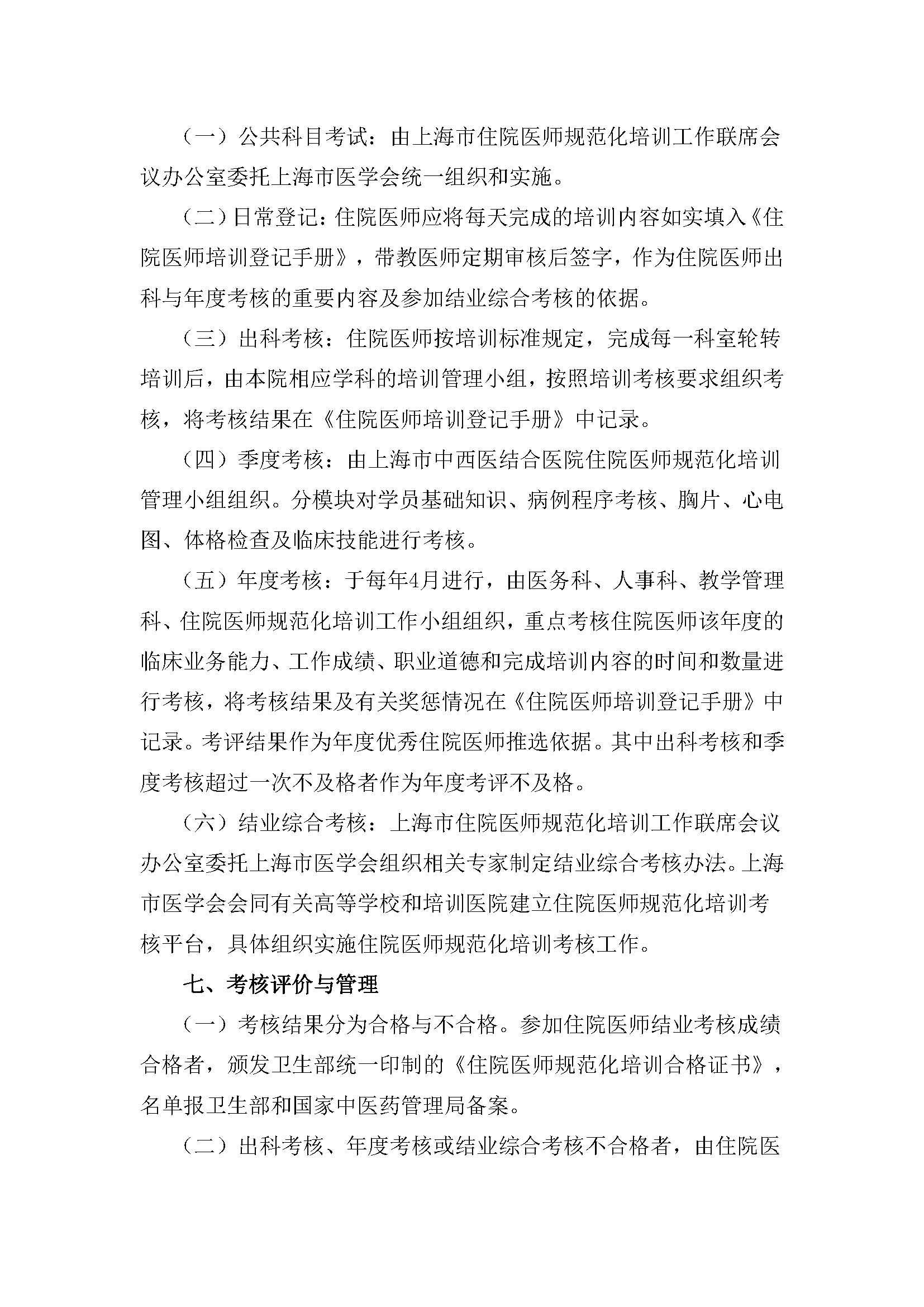 上海市中西医结合医院住院医师规范化培训考核和管理办法(试行)