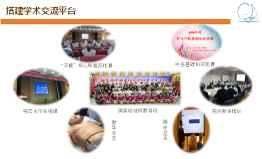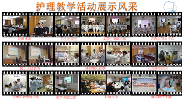 护理部拥有优质护理教学资源、丰富的专科护理与临床教学经验。目前承担中医大护理学专业研究生、本科实践基地、成都中医药大学护理学临床实习基地、健康医学院护理学临床实习基地等多所院校实习基地教学工作。本着立德树人为根本,以理想信念为核心,以社会主义核心价值观为引领,引导临床护理教师做“四有”好老师。实施三级教学管理、加强教师能力培养,以德立身、以德立学、以德施教、以德育德。教学团队根据护理学的实践特点,结合临床护理教学现状,通过引入临床师资、打破学科界限、注重人文整体、建立全程跟踪等把教学实践应用于临床带教中。近5年近来取得了一些教学成果。建立本院跨学科护理教学团队 通过团队建设,规范案例内容,探索适合本院的护理PBL教学模式。设计本院xMOOC的教学模式制定及编制了教学管理文件、教师培训手册、教案讲义集、教学反思录、微语微世界等教学手册和教学视频,注重师生能力培养。