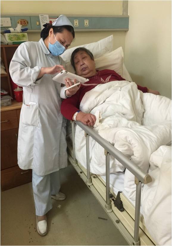 走在骨伤科病房的走廊里,墙上挂着图文并茂的“十二字养身操”和不停滚动播放的功能锻炼小视频能让你感受到她们的主动服务意识。为了让病人更有效的进行到康复锻炼中,责任护士会带领病人们一起做,对于那些无法下床的患者,责任护士会到床边将ipad中的视屏及图册给病人观看。有些听力不好和一些接受能力有限的病人,她们会手把手的示范动作给他们看……