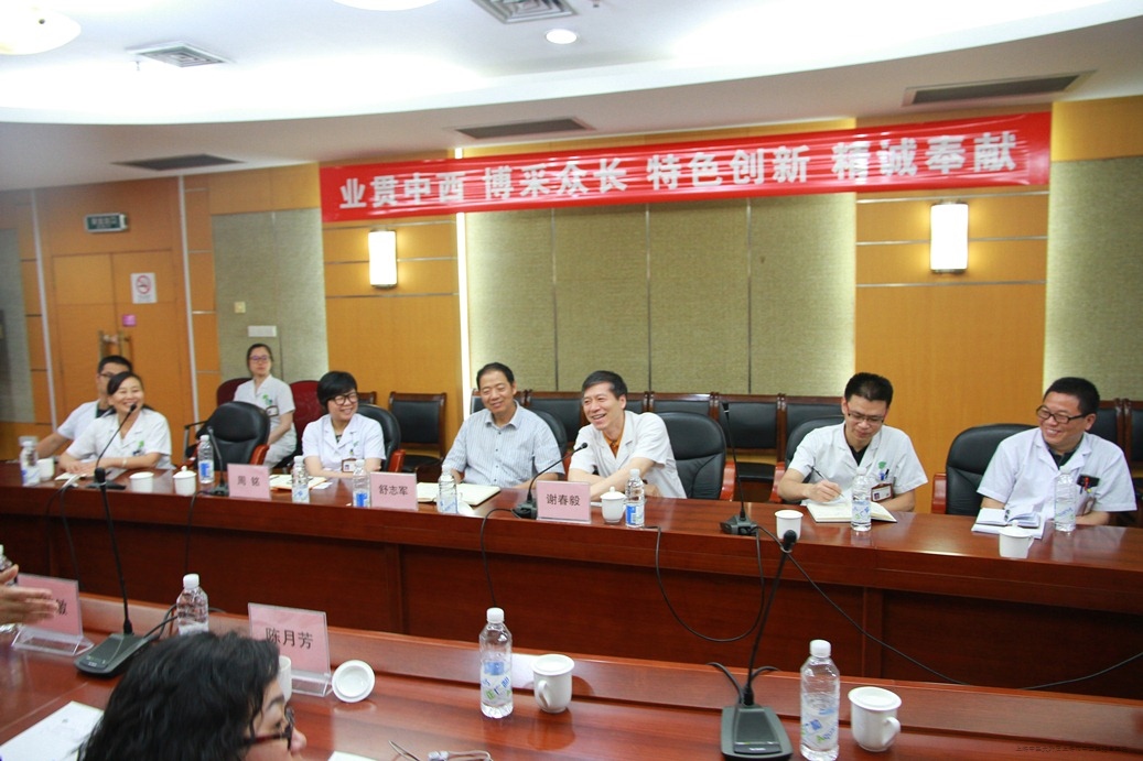 交流学习会上,舒志军院长介绍了我院发展情况及工作业绩,并希望通过此次交流,促进两家医院的发展。宁波市卫计委陈月芳副主任对我院脉管科、重症肌无力科等特色专科有着浓厚的兴趣,就奚老学术、创面修复等专科问题及专科建设展开热烈的切磋交流,并对我院浓厚的中医文化底蕴和周到的职工人文关怀印象深刻。宁波市第一人民医院陈晓敏书记在初步了解我院的概况后,对双方学习交流非常期盼,希望通过交流访问、学习等活动,进一步推动两院之间的业务发展,更好地为患者服务,互相学习进取,开拓思路,不断发展。随后,两院领导与专家分别就临床、教学、科研、医院管理等方面的经验进行了分享,并就共同关注的临床难点、科研热点、管理与运行机制等问题进一步展开了交流。