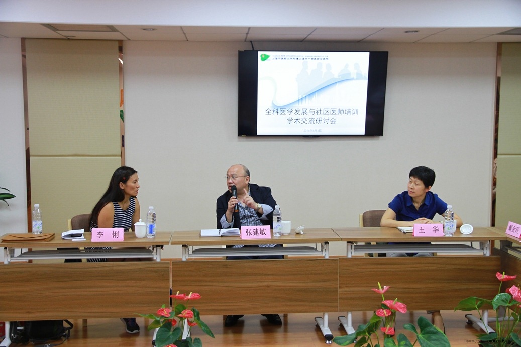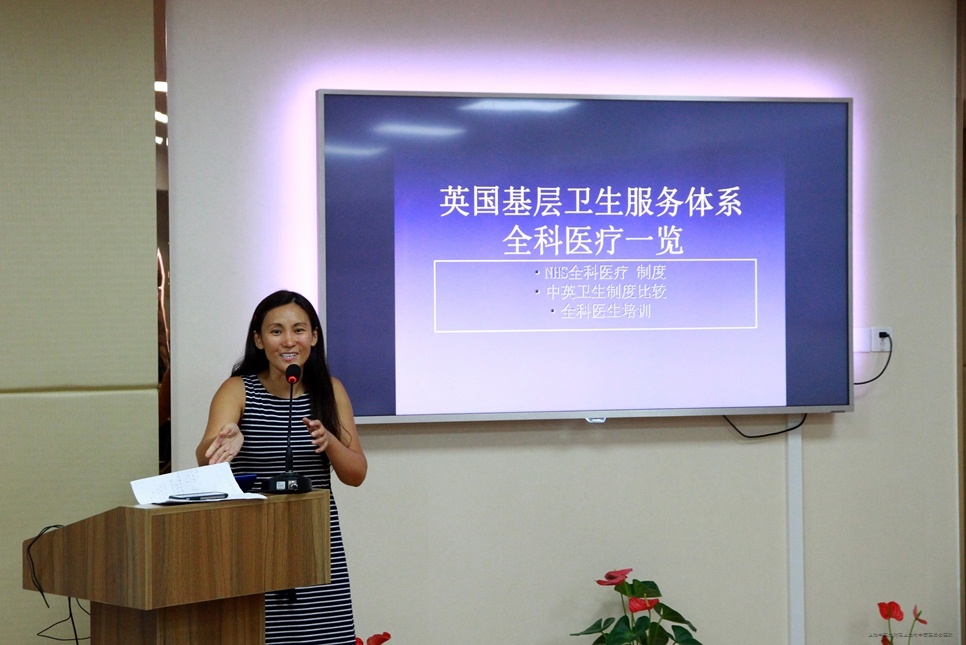 2016年8月3日下午,英国剑桥社区诊所李俐医生在虹口区卫生计生委张建敏副主任、中医药发展与基层卫生科王华科长的陪同下来访我院,就“全科医学发展与社区医师培训”进行了学术交流。我院院长舒志军,副院长谢春毅、舒勤,医疗服务接待办主任原理、门诊办公室副主任臧金旺、教学管理处副处长郝立爽,以及我院中医全科住院医师规范培训学员、针推专业本科毕业实习生、部分临床科室医护人员等出席了本次研讨会。