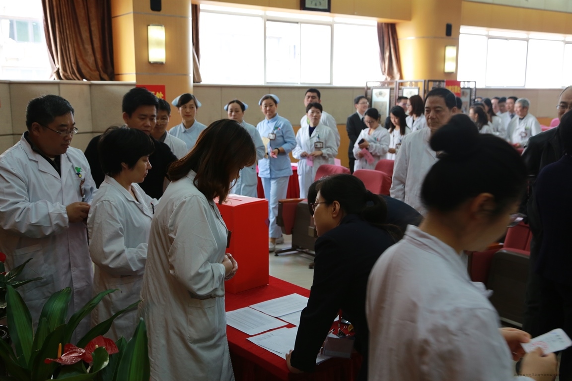 在投票选举大会开始前,区卫计委党工委副书记苏平宣读了选举大会主持人的委派决定。我院党委副书记周铭担任本次选举大会主持人。她介绍了选区的代表人数以及正式候选人产生情况,推选确定了选区工作人员。随后,全体选民按照验证、发票、填票、投票的顺序先后进行现场投票。投票选举一直持续到下午,过程严肃有序,选民们均以饱满的政治热情投下了自己庄严的一票。