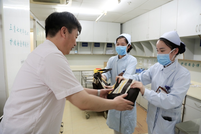 区卫计委领导一行先后来到我院急诊科、预检台、药房、检验科、急诊输液室等处,向在岗的医护人员送上高温慰问品,感谢他们在炎热的夏天坚守岗位,并叮嘱大家在高温期间,工作一定要做到忙而不乱、注意安全,要科学、合理地安排好作息时间,做好防暑降温工作以便更好地为广大患者服务。