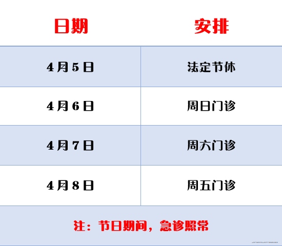 我院“清明节”期间门诊安排